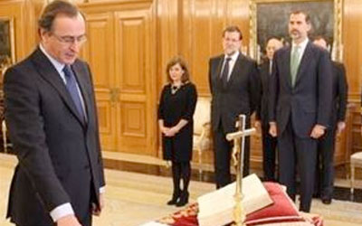 Alfonso Alonso ha jurado su cargo como nuevo ministro de Sanidad, Servicios Sociales e Igualdad ante el Rey en el Palacio de la Zarzuela, en presencia de los máximos representantes de los tres poderes del Estado.