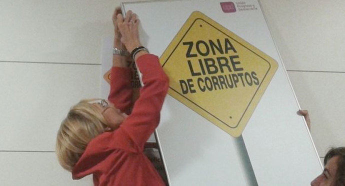 UPyD ignora a Posada y vuelve a colgar el cartel de `Zona libre de corruptos´