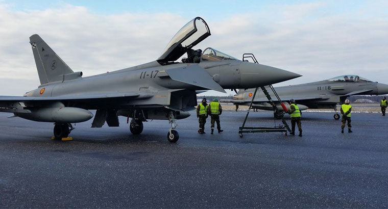 Cuatro 'cazas' Eurofighter españoles serán desplegados a partir del 1 de enero en Lituania para participar en la misión de la Policía Aérea de la OTAN en el Báltico, donde se encargarán de vigilar el espacio aéreo ante la constante presencia de aeronaves militares rusas en la zona, que se ha incrementado notablemente a raíz del estallido, en abril de 2014, del conflicto en el este de Ucrania.