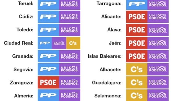 Este mismo caso es el de Guadalajara y el de Salamanca, donde Unidos Podemos, que ahora no tiene escaño en ninguna de estas dos provincias, se lo puede quitar a Ciudadanos en ambas.