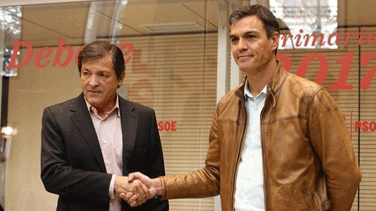 El secretario general electo del PSOE, Pedro Sánchez, y el presidente de la Gestora, Javier Fernández, hablarán este lunes sobre el sentido del voto de los diputados socialistas en la moción de censura contra Mariano Rajoy presentada por Podemos y